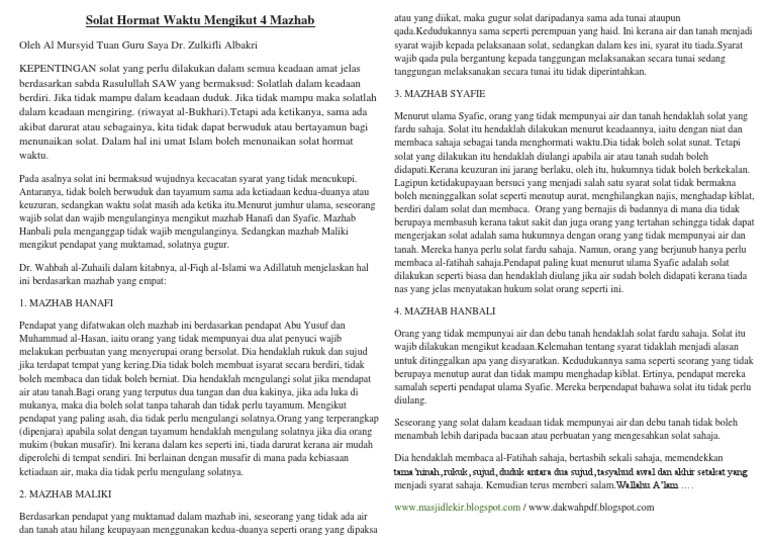 Risalah Dakwah 041 Solat Fardu Menghormati Waktu Menurut 4 Mazhab Pdf